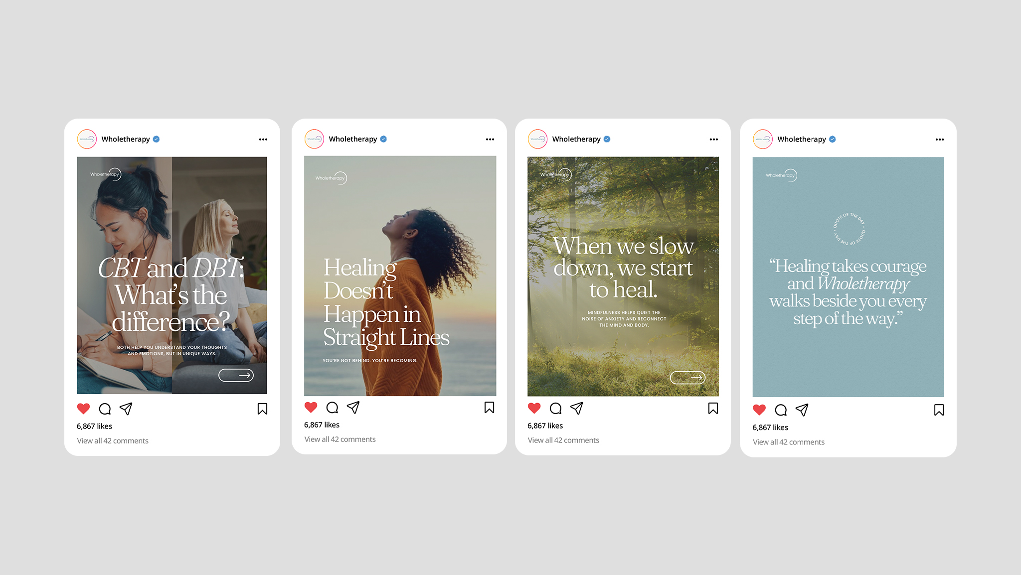 Wholetherapy was repositioned as a clinic that recognized the cyclical nature of trauma recovery. The brand narrative, “Come Home to Your Whole Self,” normalized pauses and restarts as expected parts of the healing journey rather than signs of failure.